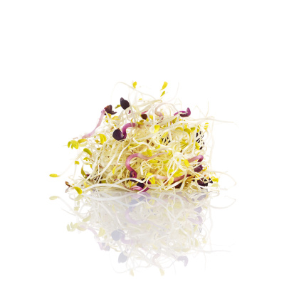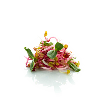 Graines germées à inciorporer dans une salade de betteraves, chèvre et noix